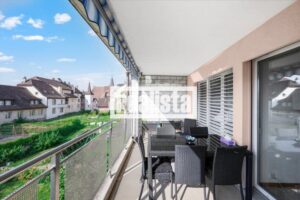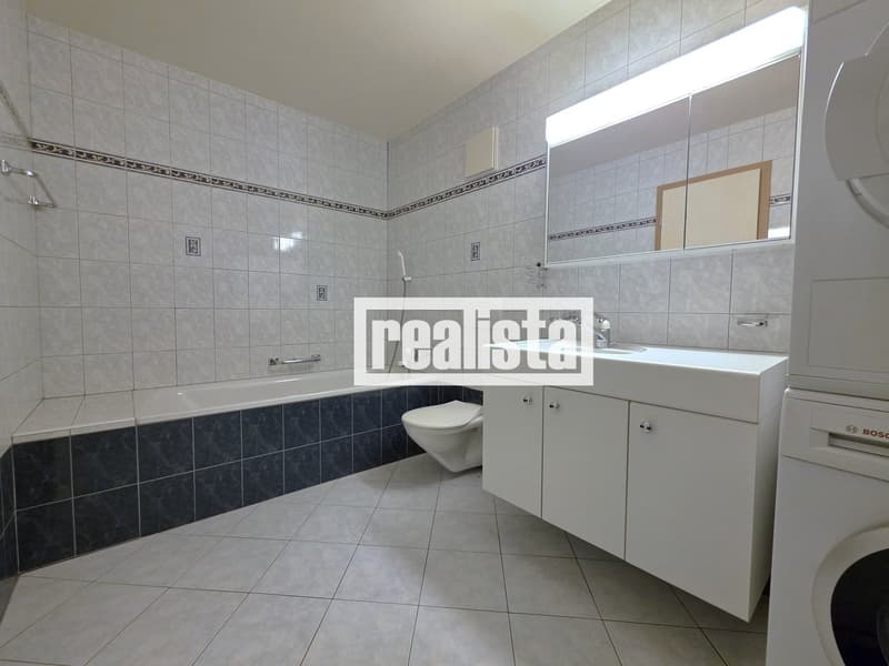 Avec une surface généreuse d’environ 135 m² habitables, l’appartement se compose de trois belles chambres à coucher, d’un vaste séjour lumineux avec poêle à bois, d’une salle à manger conviviale et d’une cuisine ouverte parfaitement équipée. Un cellier attenant permet un stockage optimal, et les nombreux rangements intégrés facilitent la vie au quotidien.